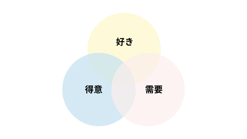 その両方を満たすためにおすすめなのが好き・得意・需要」の3つを基準に考える方法です。
